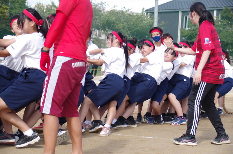 〇グラウンド整備を行っている間に、あけぼの祭の前半(有志グループ作成の映像鑑賞)を体育館で行い、10時からグラウンドでプログラムを再開しました。その後は秋空にも恵まれ、午後に全校綱引きと色別対抗リレー、閉会式を行いました。