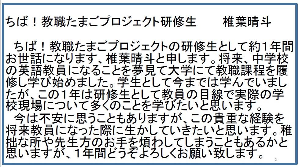 4月14日(木)ちば!教職たまごプロジェクト研修生