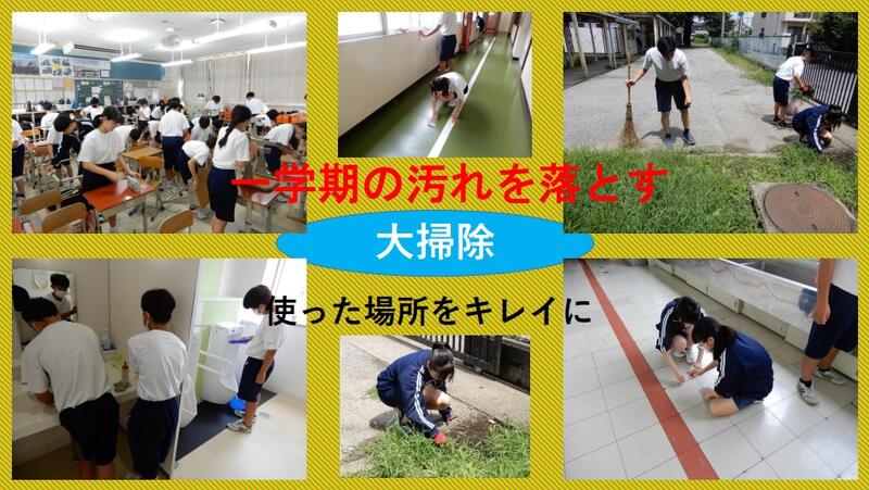 〇3校時は大掃除を行いました。夏休みに入る前に、自分たちの力で、校舎をキレイにして、明日の終業式に備えます。