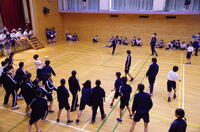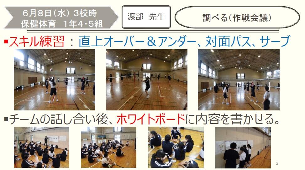 〇1年生はバレーボールに関してはほとんど未経験者ばかりでしたが、パスやサーブの基礎スキルを身に付け、ゲームによってその楽しさを味わいながら、スモールステップの目標を達成させようとする指導者のねらいがはっきりとした授業でした。
