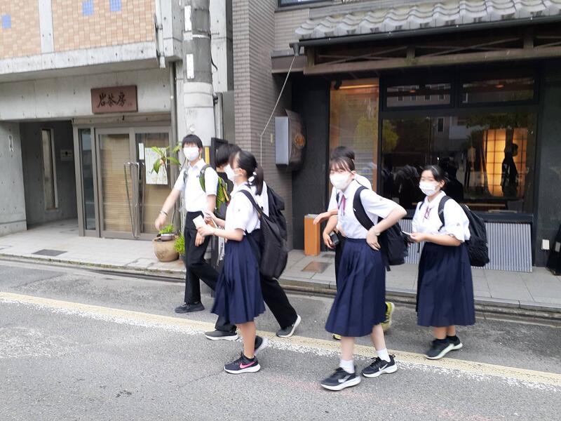 本日、多くの班が訪れるのは、清水寺、二条城、金閣寺、銀閣寺、祇園、錦市場、嵐山の渡月橋などです。生徒は市内のバスや地下鉄が乗り放題の「一日フリー乗車券(800円)」を効率的に使って、まわるように自分たちで計画しています。