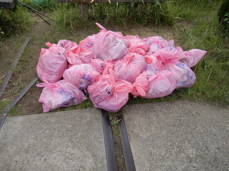 〇生徒は各クラスで5コース(約2㎞)に分かれ、安全に気を付けながら、瓶、缶、ペットボトル、不燃物などを拾い、分別しました。特に吸い殻が多いことが、生徒の印象に残ったらしいです。