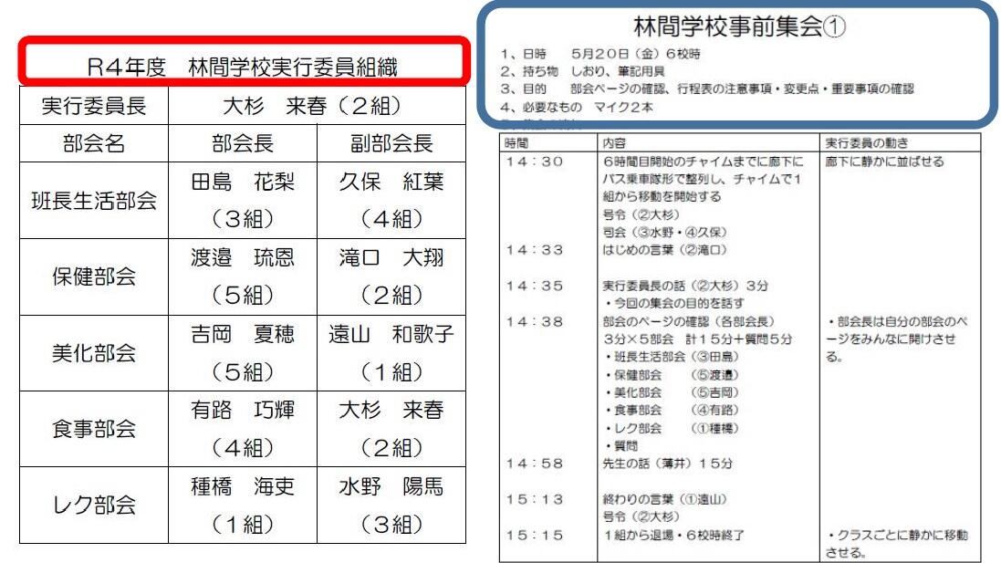 5号議案(令和4年度委員会・部活動活動計画)…5分間各自読む。⇒質問・修正案・意見をとる 生徒会規約について…3分間各自読む。