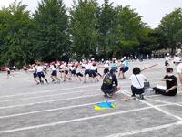 〇学区にある小学校2校にお邪魔しました。雨も心配されましたが、逆に暑くないので熱中症の心配もなく、両校の児童のみなさんは、楽しそうに取り組んでいました。富勢小は感染症対策として、2・4・6年と1・3・5年の2部制の入れ換えで行い、片方の学年は教室内で校庭の様子を映したオンライン画像を観ていました。