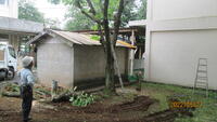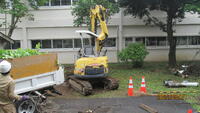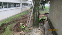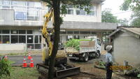 〇その第一段階として、中庭の樹木の数本を伐根・伐採する工事が必要になり、生徒がいない昨日と今日の土曜・日曜日に行っております。中庭には実のなる梅や柚の木がありますが、出来るだけ残してもらうようにお願いしています。