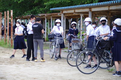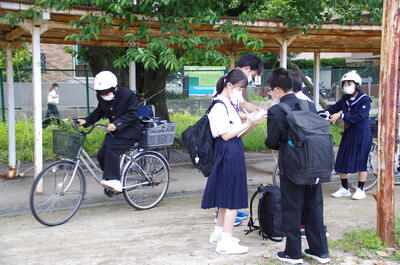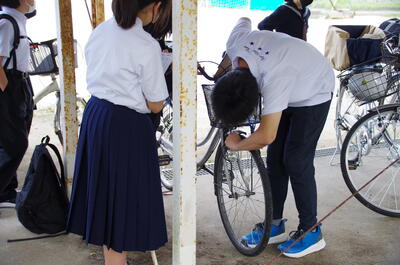 〇原則月に1回、生活委員を中心に、各学年の自転車置き場の前に自転車を並べ、点検を行っています。そして点検終了後、整備不良があれば3日後までに整備してくることを伝えています。