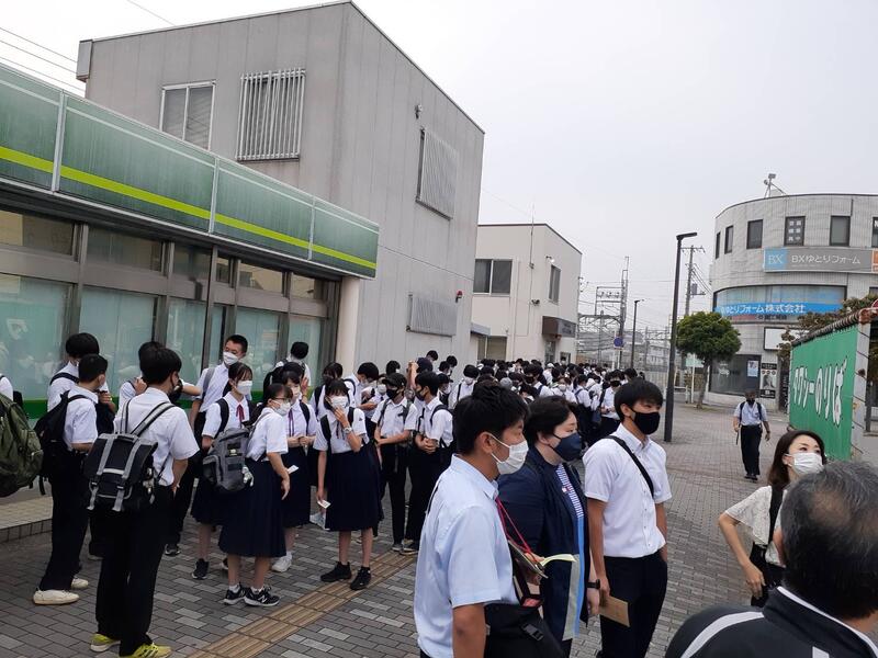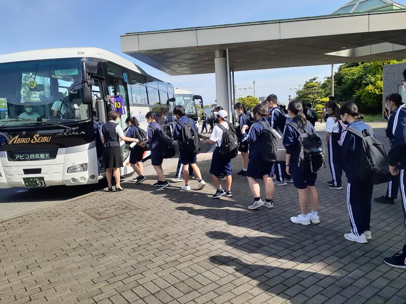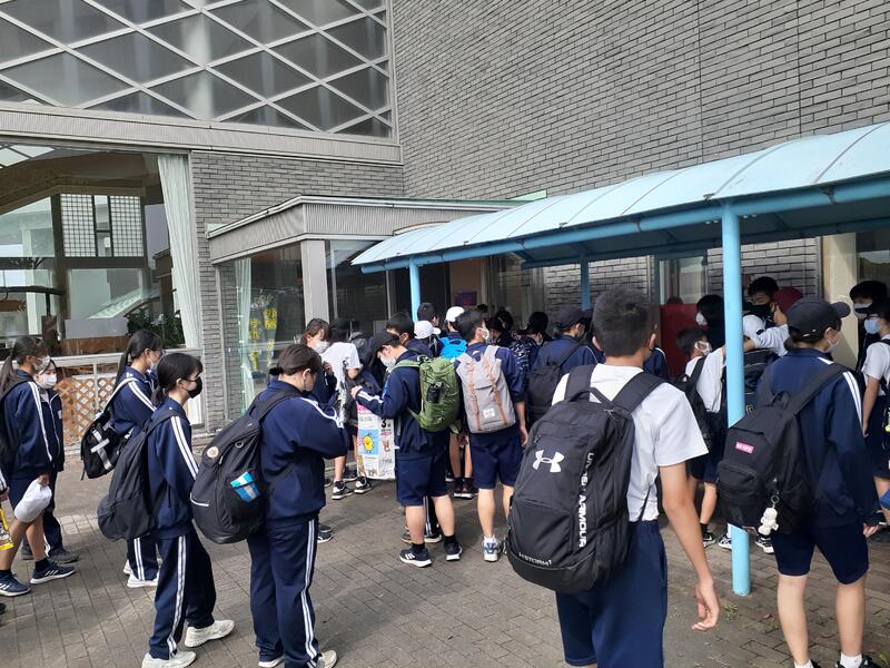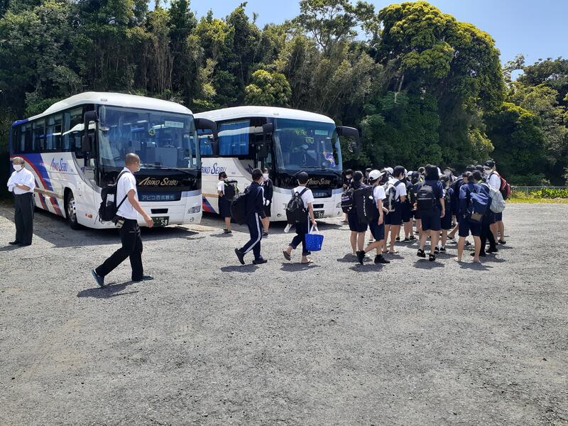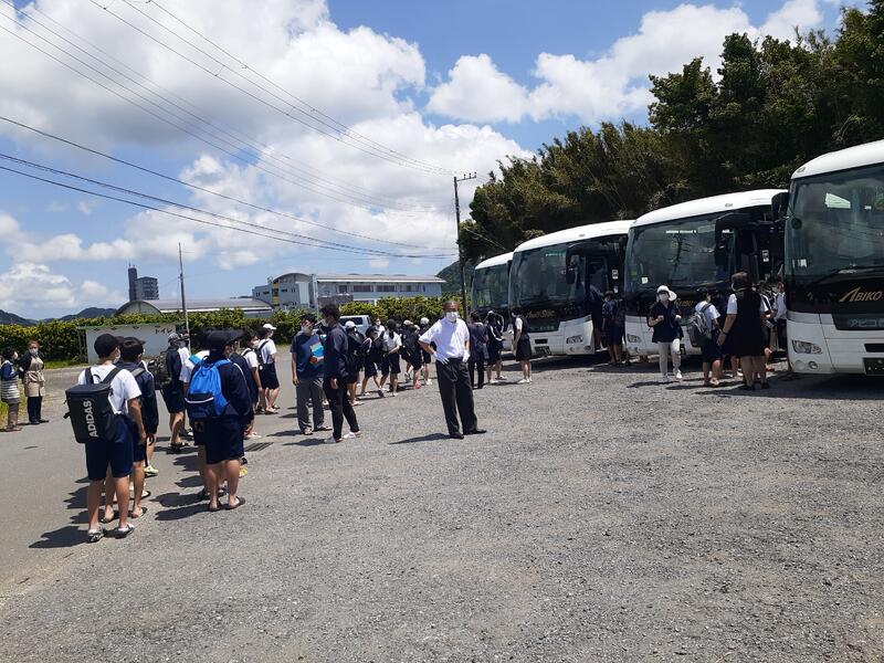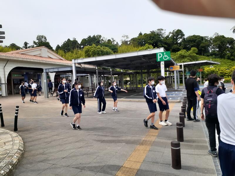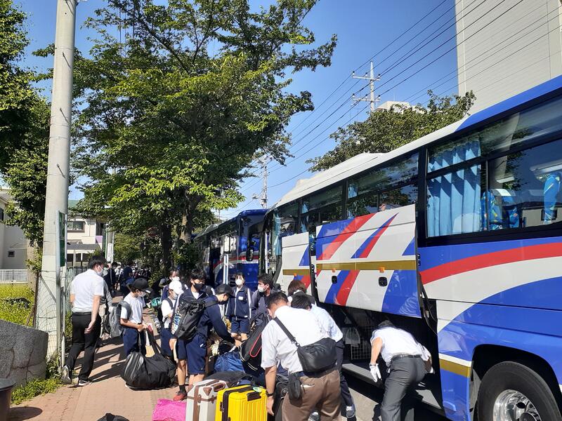 バスが学校前に停車している間に、トランクから荷物を素早くおろし、そのまま下校です。生徒の皆さんお疲れ様でした。さようなら。