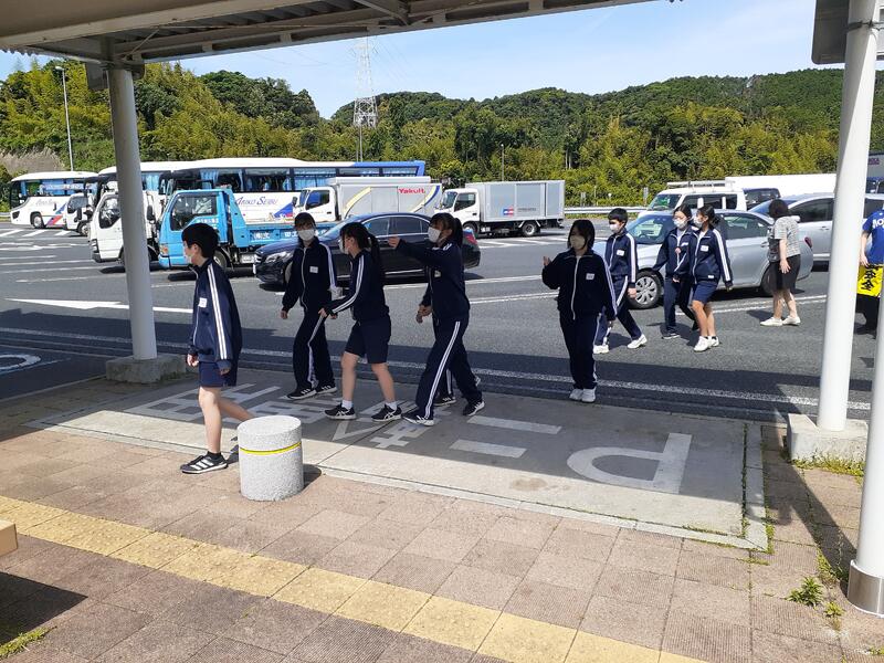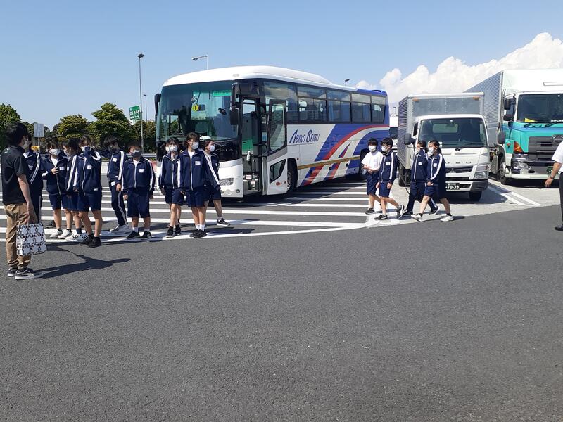 幕張サービスエリアを予定よりはやく出発します。学校にも予定よりはやく三時半には到着しそうです。ここまで生徒たちは、3日間を通して時間を意識して行動してくれました。素晴らしいと感心しきりの3日間でした。ご家庭でも誉めてあげて下さい。学校前でバスから降りたらそのまま下校します。明日は2学年のみ、10時15分登校になります。疲れていますので、ご家庭で様子を見て下さい。