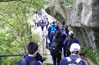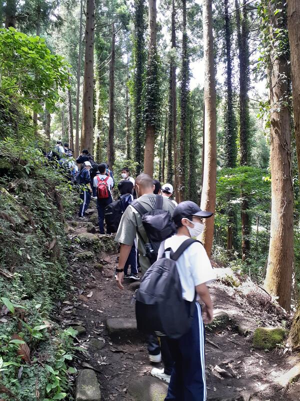 登山中。ロープウェイは使わずに、みんなで歩いて登りました。