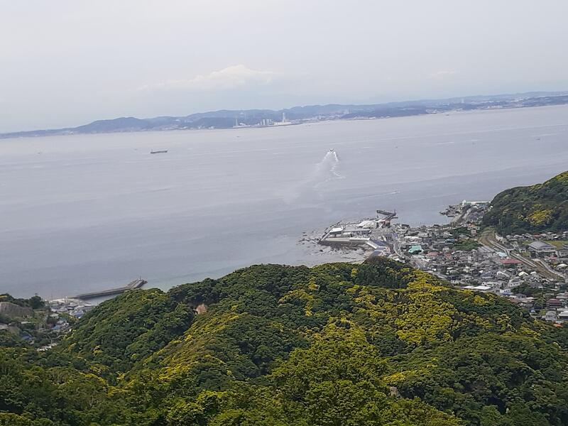 鋸山のふもと、浜金谷港に到着しました。晴れで気温23℃。今は大丈夫ですが、これから暑さ対策が欠かせません。