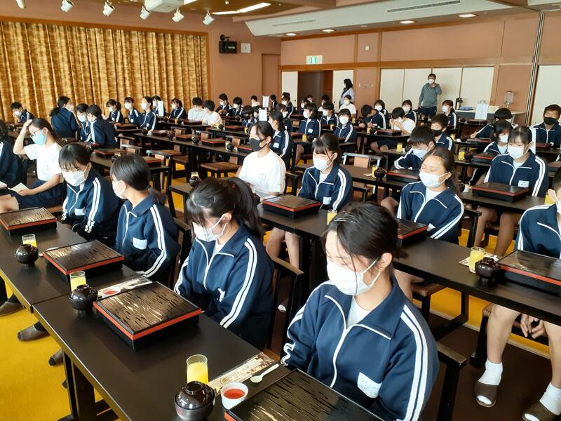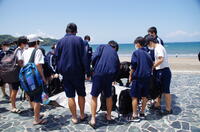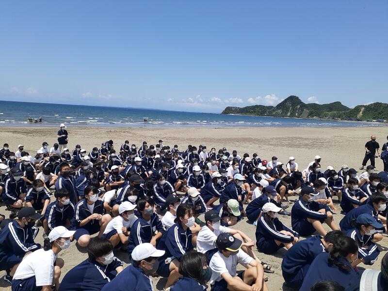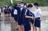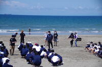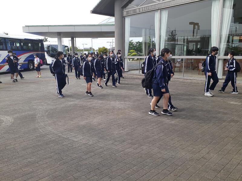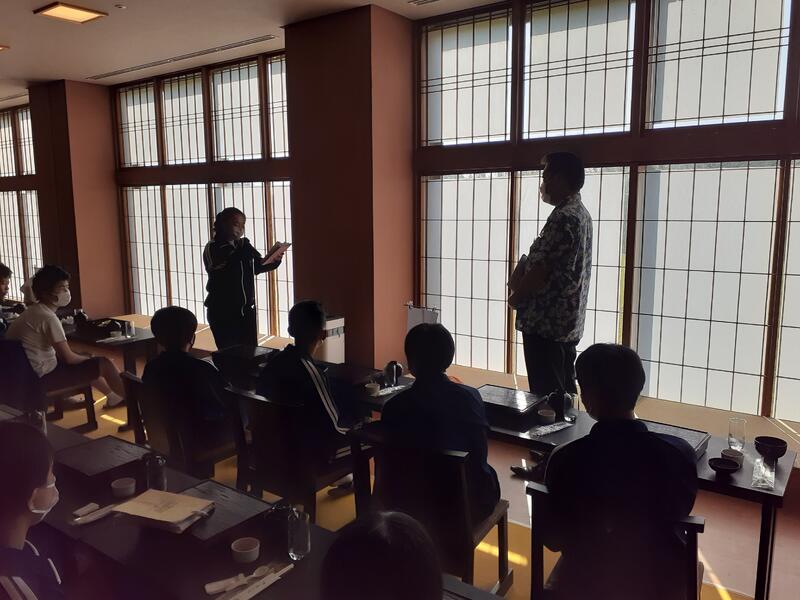 2泊お世話になったホテルの方に、代表の吉岡さんからお礼の言葉を差し上げました。ホテルの方からは、「今日の地引き網体験を頑張ってください。また機会がありましたら、ご家族と一緒にお越しください」と挨拶がありました。聞いている生徒たちも礼儀正しく、私も教員三十六年目ですが、これだけ自慢できるような生徒たちは初めてです。