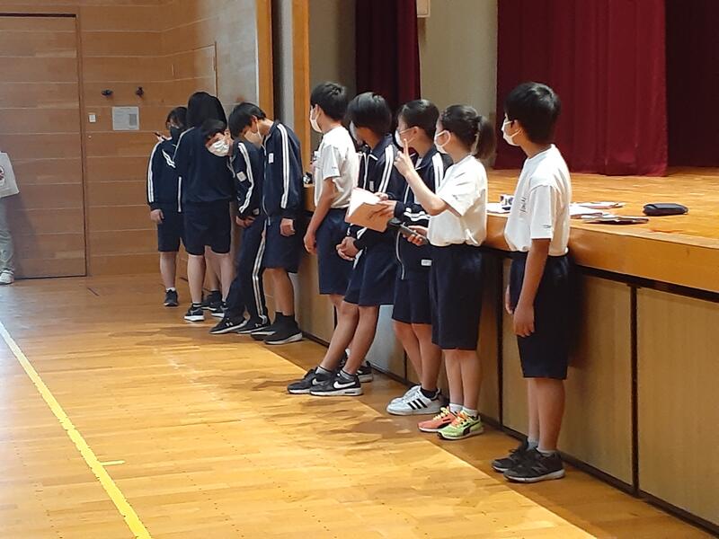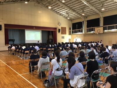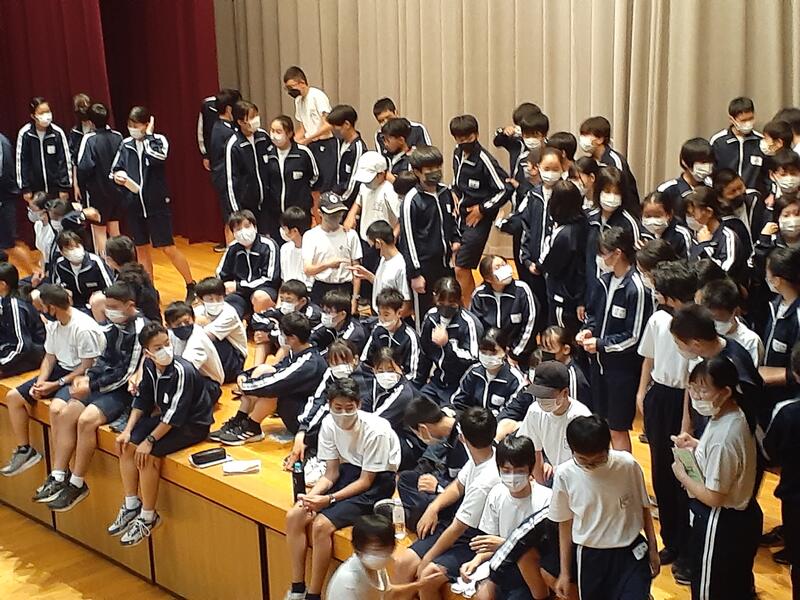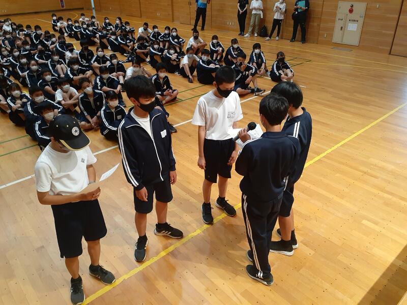 〇後半は体育館へ全員が移動し、「今年度の活動方針・計画」を議題として、学級討議で出た質問や意見・その返答の後、採決しました。また第6号議案(委員会の数を変更する)の提案もあり採決しましたが、こちらは否決されました。結果よりもこのプロセスが「民主主義」を身近に感じる経験となります.