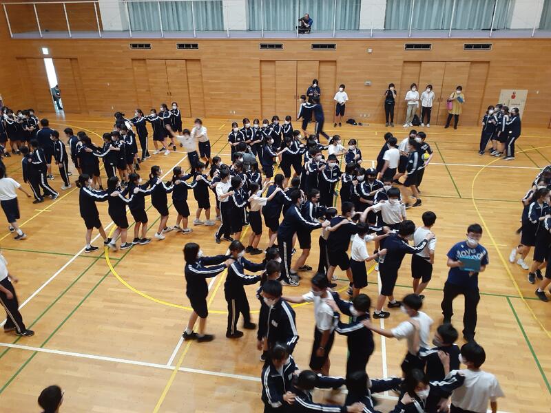 ホテルに着いたあとは少し休憩し、学年レクリエーション(じゃんけんリニアモーターカーと王様ドッチボール)をホールで行います。