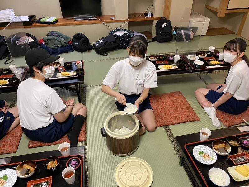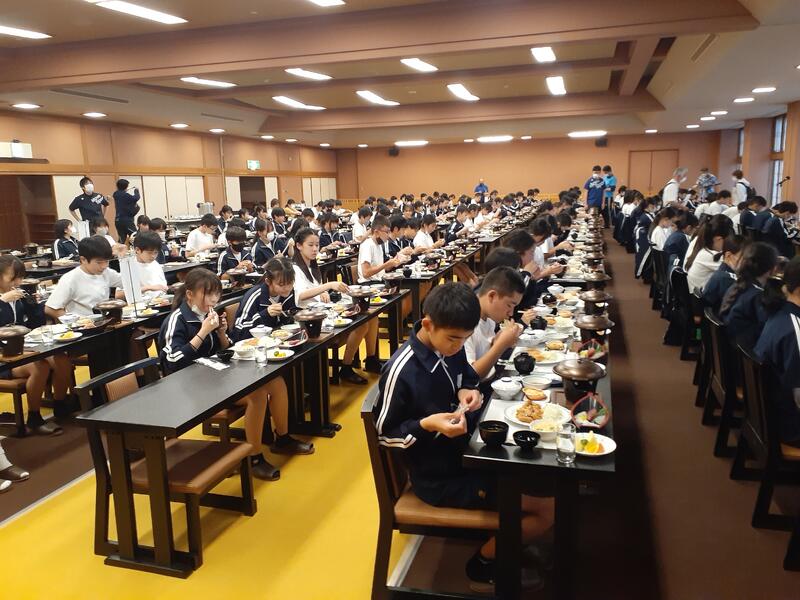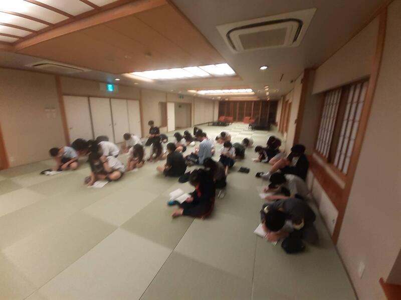 この後は、夕食と入浴、学級会議、さらには8時から宿舎内の大広間で、扇子作りの体験学習があり、昨晩よりも忙しい日程になっています。