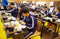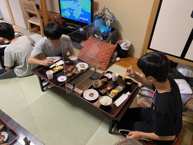 生徒たちが朝食会場に集まる時や食べている最中に様子を観察し、具合の悪い生徒がいないかをチチェックします。