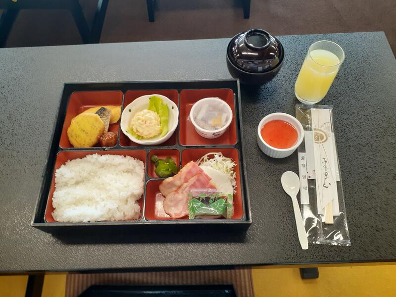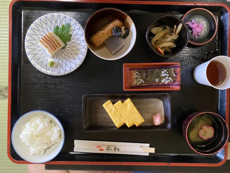 昨晩と同じ場所での朝食。しっかり食べないと、鋸山に登れません。