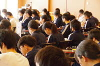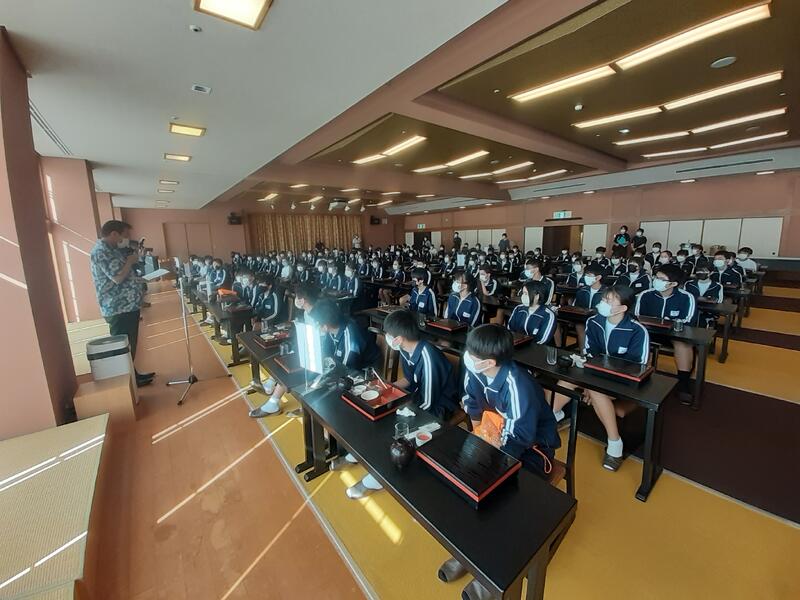 全クラスが集まって最後の昼食。終わりましたら、京都駅前まで歩いて移動します。