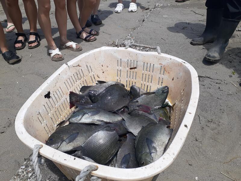 獲れた魚の説明がありました。メジナ 黒鯛 サクラ鯛 カンパチやブリの子ども ホウボウ シロギス です。すべてこれから、あら汁にしてくれます。