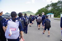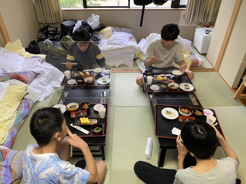 六時半起床、朝食、部屋の片付け、荷物の積み込みとあわただしく始動しました。本日は天気の問題はありませんが、気温が30℃を超える予報です。午前中のクラス別行動は、疲労もあるので、熱中症に留意させます。今朝の朝食は、パン、目玉焼き、サラダ、牛乳、スープ、ヨーグルトです。