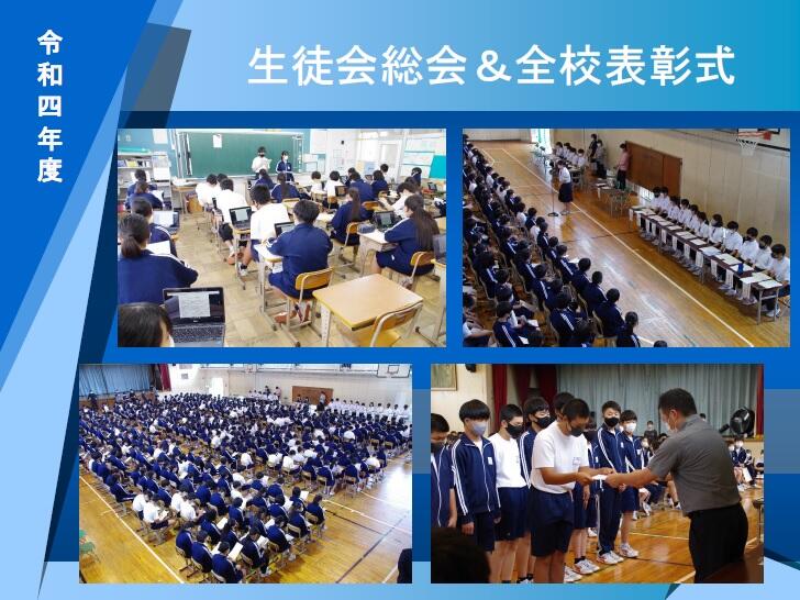 〇続いて4月からの部活動の各大会の表彰を行いました。昨年度までは、校長室で個別に行うだけでしたので、全校生徒の前で行えて良かったです.