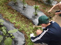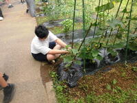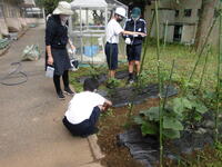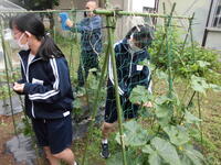 〇あすなろ学級では、夏野菜のキュウリ、ナス、トマトを中庭で栽培しています。これまでもう何回か収穫しています。特にキュウリは、一晩でビックリするほど成長するので、生徒たちも驚いています。