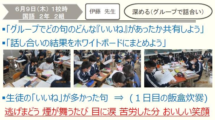 〇私はこれを、「目の前が九十九里浜である夜のホテルの窓から、波の音が聞こえているが、疲れて友達の声と混じり合っているうちに眠ってしまった。その夜の夢は翌日の地引網の大漁だった」と読み解きました。生徒たちの感性は素晴らしいです。
