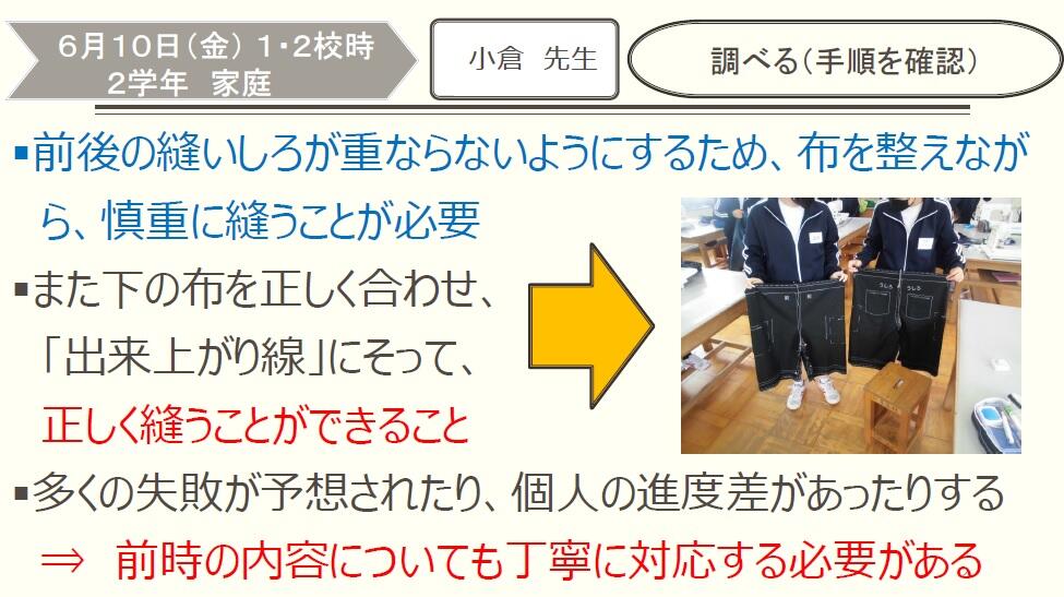 〇美術や技術・家庭など、作品制作をする授業はどれも進度の個別差が大きく、指導者もそれに合わせてアドバイスや手直しが必要となります。待ち針やミシンの操作など、普段使用していない道具を扱うのは、きちんとその目的や方法を理解していないと、失敗を繰り返すことになります。