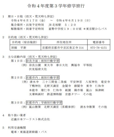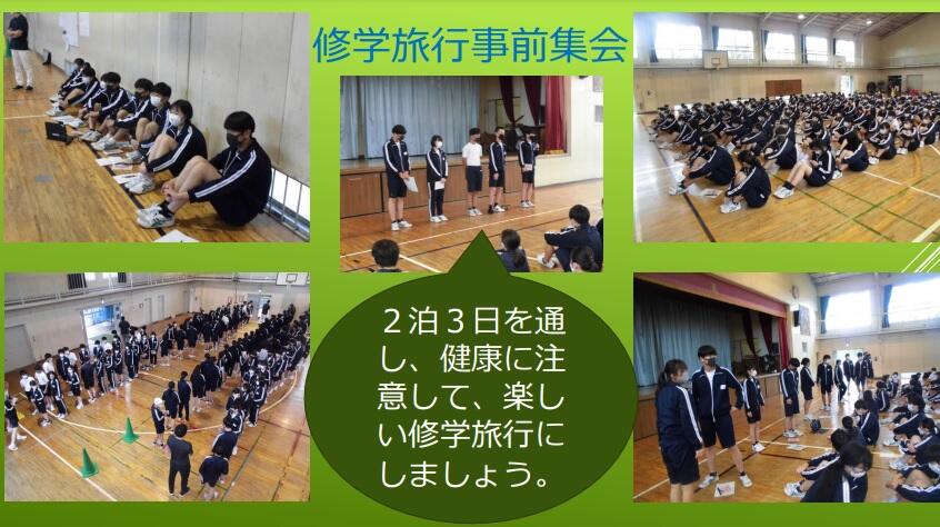 〇金曜日から2泊3日の行程で、京都・奈良方面の修学旅行を実施します。本日の6時間目に注意事項などの確認を行いました。