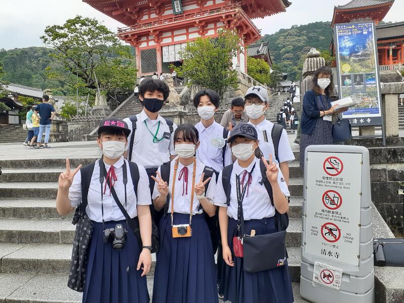 各ポイントにいる先生方から写真が送られてきました。曇り空であまり暑くなく、熱中症の心配はなさそうです。清水寺からの京都市街。