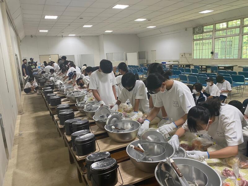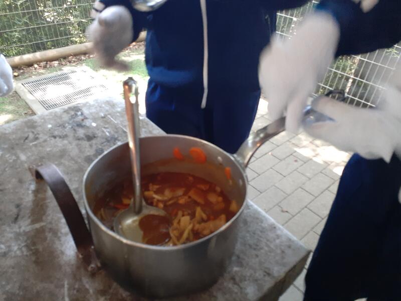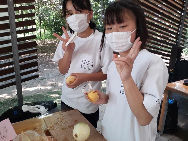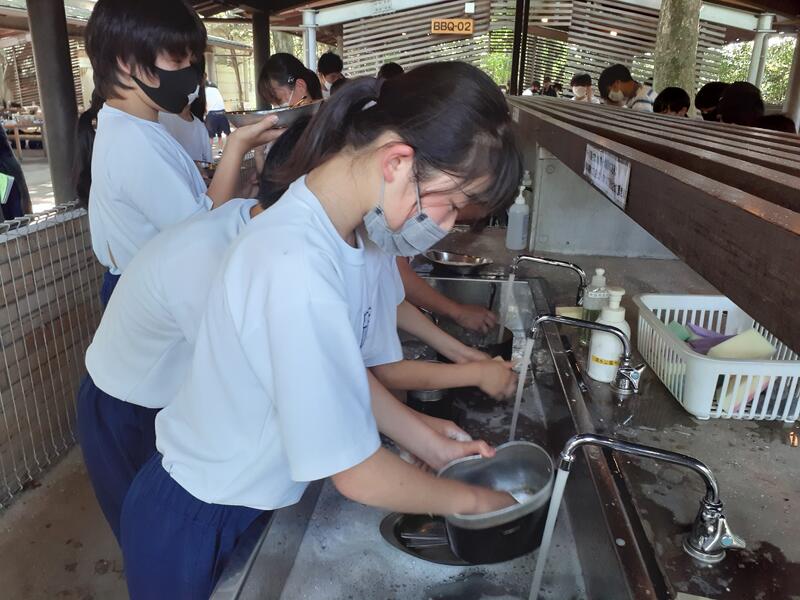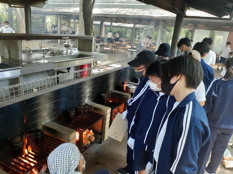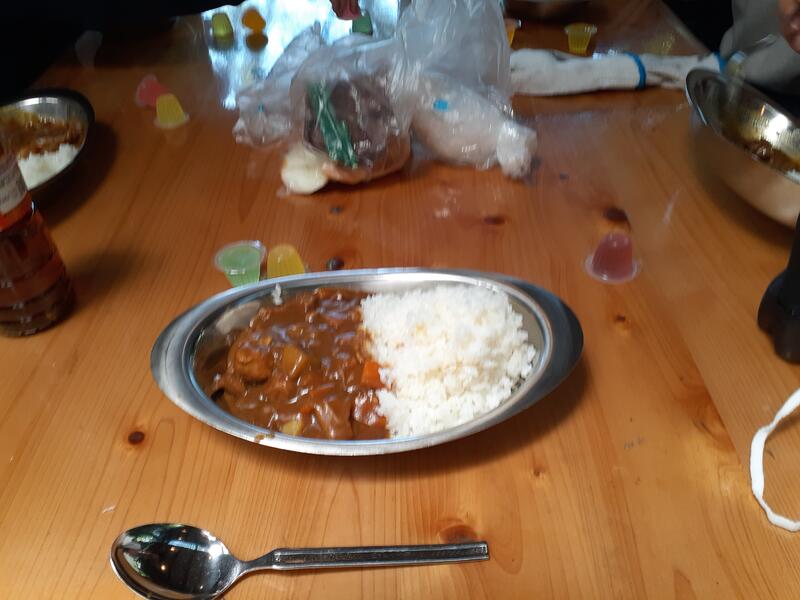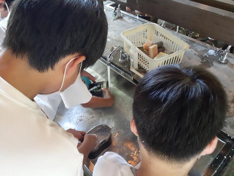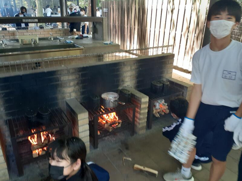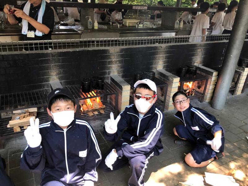 あちらこちらから「いただきます」と大きな声が聞こえます。暑さと闘いながら、みんなて作ったカレーライスの味は、いつもとはちょっと違って、「深くて何とも言えない」味かもしれません。私も一組2班が作ってくれたカレーを一緒にいただきました。気を利かせて大盛にしてくれたのですが、いつもよりも多いので、何とか食べきりました。