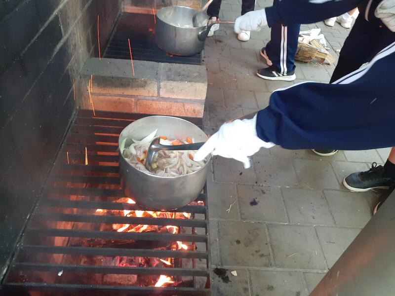 飯ごうとカレー鍋の状態を見ながら、最後の仕上げに入ります。微かな風が吹いていますが、日向の気温33℃、木陰でも30℃近いです。私も朝からペットボトル二本を既に飲んでしまいました。