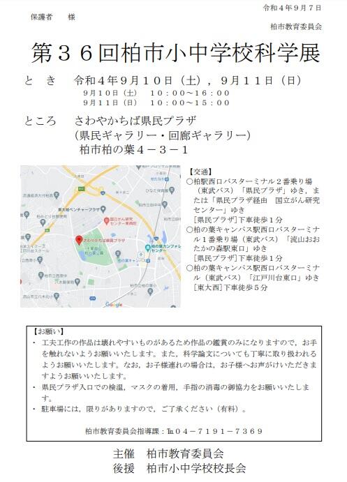 9月9日(金)第36回柏市小中学校科学展へ出品と科学展のご案内