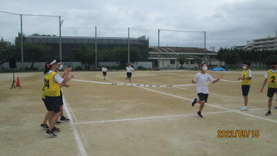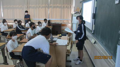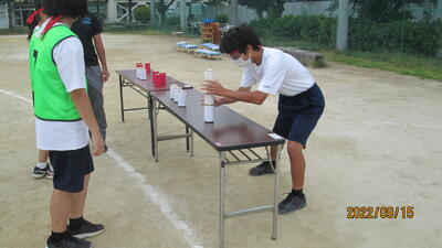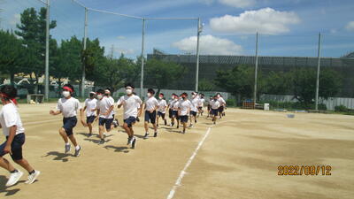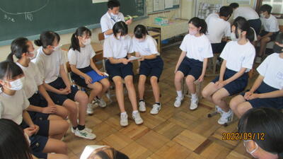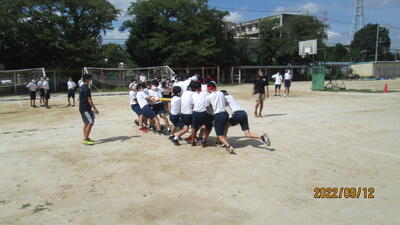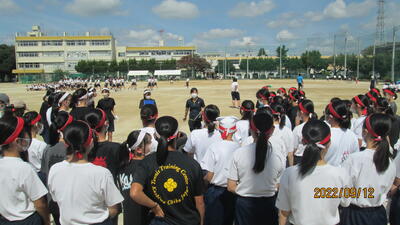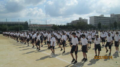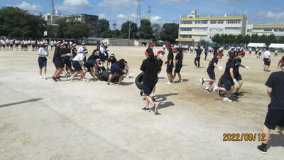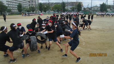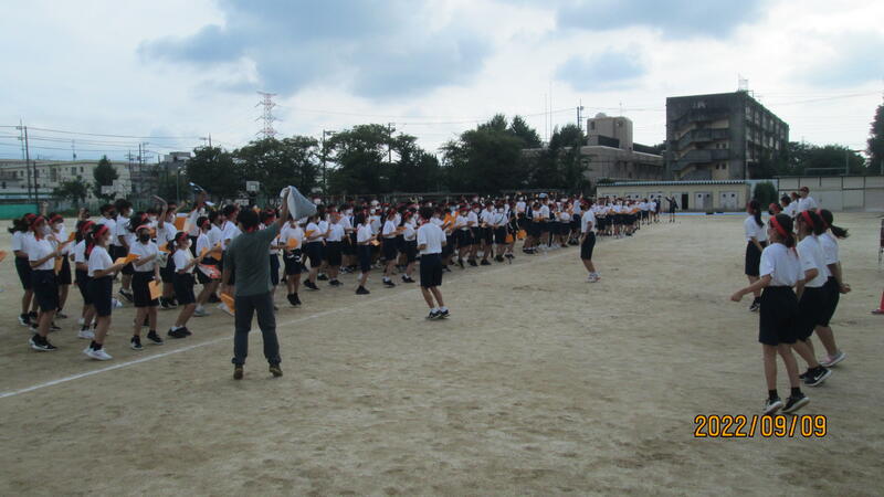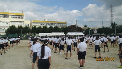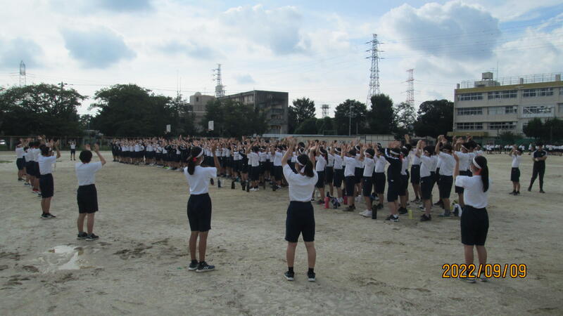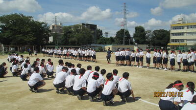 〇5校時の避難訓練後、晴れてきた校庭において、初めて体育祭の色別で集まりました。応援リーダーの自己紹介と応援練習を行いました。マスクはしたままでしたが、3年振りに太鼓のリズムに合わせ、生徒たちの掛け声と手拍子が響くのを見聞し、職員の多くも感動していました。