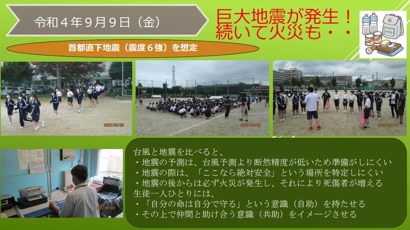 〇生徒たちが教室に戻ってから、私から放送で、いつくるかわからない大地震に、繰り返し練習することの必要性、自分で命を守るためには日頃からの心備えが必要なことを伝えました。