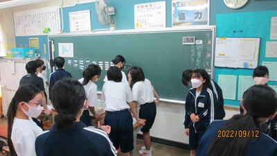 〇柏の葉中の授業を参観し、その後各教科に分かれて、授業のねらいや生徒たちの学びの様子について、話し合いをしました。教職員にとって自分の学校だけでなく、今日のように他校の授業を題材に研修していくことが、明日からの自分の授業に役立つので、有意義な時間でした。