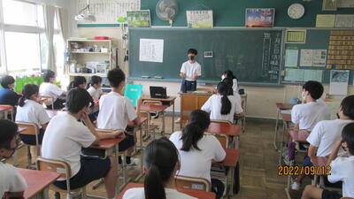 〇4月に続いて、2回目の避難訓練を行いました。今回は事前に何時に行うかの予告をしない状況で、突然給食後の昼休みに「緊急地震速報」を流し、その後第1次及び第2時避難を行いました。蒸し暑い中でしたが、ふざけて参加する生徒は皆無でした。