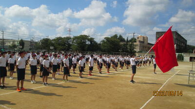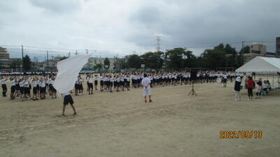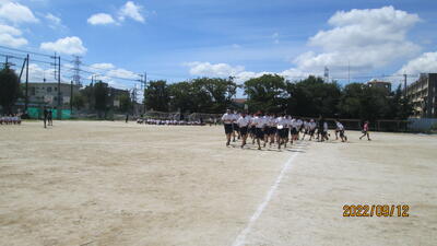 〇明後日の本番当日を想定し、予行練習を行いました。昨晩から涼しくなり、グラウンドにも爽やかな風が吹いていて助かりました。目的の一番は、係り生徒の動きを確認し、それをもとに本日中に改善点を洗い出し、修正案を検討することです。午後の職員の反省会で、各担当からそれについての提案がありました。