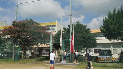 〇日本列島を縦断した台風14号は、昨日の午前中に太平洋に出たとニュースで流れていましたが、いわゆる「台風一過の晴天」とは違い、その後も昨晩まで雨が断続的に降っていました。一夜明け、お陰様で学校には大きな被害がなく、曇ってはいますが、静かな朝を迎えています。先日の体育祭で、生徒たちの活躍した姿の余韻が残っています。