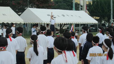 本校は「地域とともにある学校」として、この子たちが10年後の社会でたくましく生き抜いていける力を身に付けられるようこれからも尽力してまいります。今日はその中でも「目の前の課題に仲間と知力と体力を合わせ、最後までやり抜く力」の育成がねらいです。今日は、その中学生のS・・スピード P・・パワー S・・スピリットをご覧ください。本日はお時間の許す限り、躍動する姿をご覧ください。
