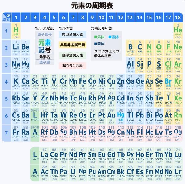 H(水素)He(ヘリウム)Li(リチウム)Be(ベリリウム)B(ホウ素)」、C(炭素)N(窒素)O(酸素)F(フッ素)Ne(ネオン)Na(ナトリウム)Mg(マグネシウム)Al(アルミニウム)Si(ケイ素)P(リン)」、S(硫黄)Cl(塩素)Ar(アルゴン)K(カリウム)Ca(カルシウム)