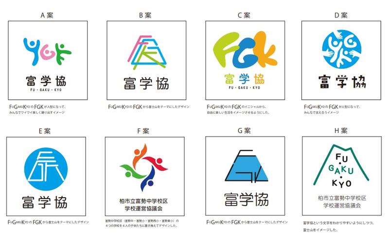 〇またその際、「富学協(ふがくきょう)」のロゴマークが入った「のぼり旗」をつくることになり、その8案が示され、子どもたちの意見も取り入れながら、ロゴを決定していくことになりました。デザイン案は、地域にお住いのデザイナーの方にお願いしましたところ、「富学協」ですから、富士山の入ったデザインもあり、洗練されたものばかりです。何に決まるか楽しみです。