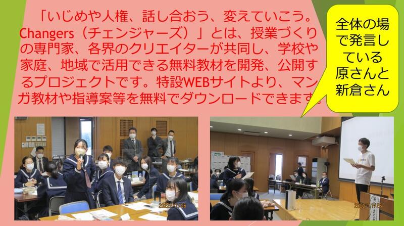 〇よい機会をもらったので、この教材を使って、12月23日の終業式に、オンライン形式で生徒会が中心となって、全校生徒に「いじめ」について考える時間を設定しようと計画しています。