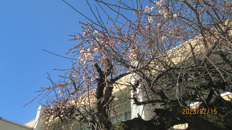 〇本校にも中庭に数本の梅の木がありますが、こちらは花のつぼみはパンパンに膨らんでいますが、残念ながらまだ1輪も開花していません。2月に入って毎日観察していますが、環境として午前中に日差しがあたりにくく、気温もやや低めなのかもしれません。