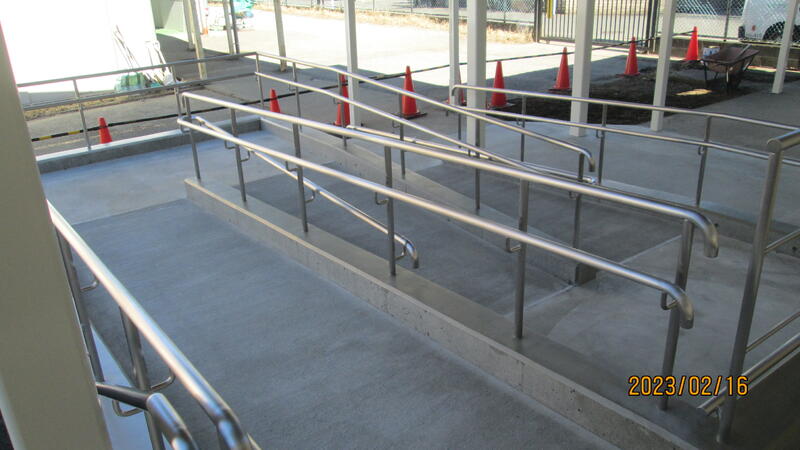 〇今回は、鉄骨などの躯体の老朽化対策やライフラインの更新、さらに耐久性に優れた材料への取替などを行いました。またトイレをはじめ生徒たちが使用しやすいように、細かい部分も改良もしてくれています。教育委員会立ち合いのもと、建築業者からの完成引き渡しを受け、今校舎の方に一時的に避難していた教材・教具や椅子・長机などを入れる作業に入ります。こけら落とし(新築または改築した劇場などで行われる初めての興行)は、来月の「3年生を送る会」となる予定です。