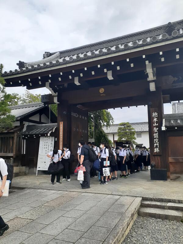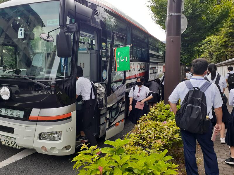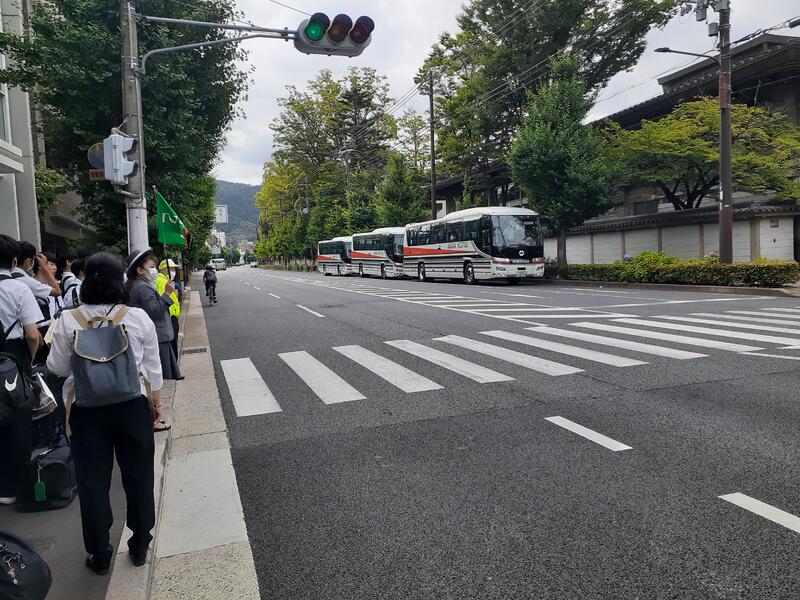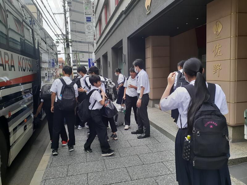 朝から午前中いっぱいはまだ涼しい風もあり、生徒たちのグループ別行動も順調なスタートでした。しかし午後からは、初夏の日差しが照りつきはじめ、生徒の体力を奪っていきました。さらにバスの乗り継ぎも土地勘もなく勝手の違いから、スムーズにいかないことがありました。グループによっては、事前に調べておいた昼食の飲食店が廃業または休業日だったりと、なかなか予定通りにはいきませんでした。しかし終わってみると、水分補給を適宜行うなどの意識の高さから、体調を大きく崩すことはなく、夕方の宿への帰着時には、どのグループも疲れた表情はありましたが、その後部屋で寝込むことはありませんでした。夕食後の座禅体験も初めての生徒がほとんどでしたが、僧侶の話を聞く態度は、さすが三年生でした。明日はクラス別行動ですので、昨日と今日の経験いかし、無事に学校に戻れるようにしたいと思います。須藤昌英