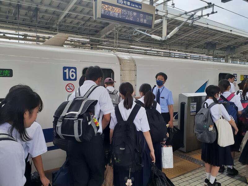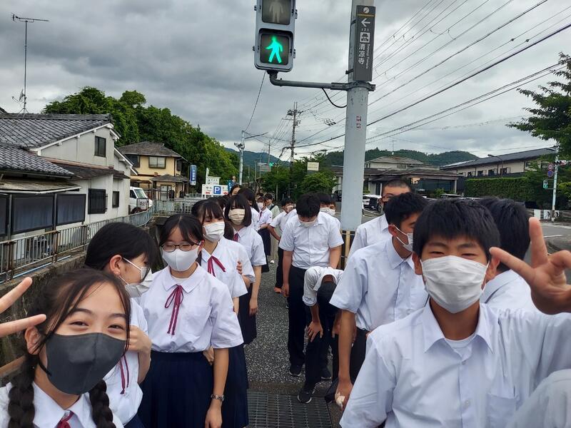 〇修学旅行で気になったのは、奈良や京都で多くの外国人観光客をみましたが、彼らは全員マスクを着用しておらず、着用しているのは修学旅行生を含む日本人のみだということです。本校生徒も気温が30℃を超えた屋外でマスクをしており、こちらから「暑いから外していいよ」と言っても、「はい」と返事はあるものの、食事以外はそのままでした。果たしてこれからどのような声かけをしていけばよいものか・・・。