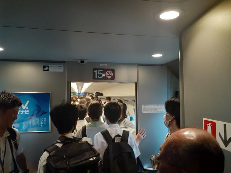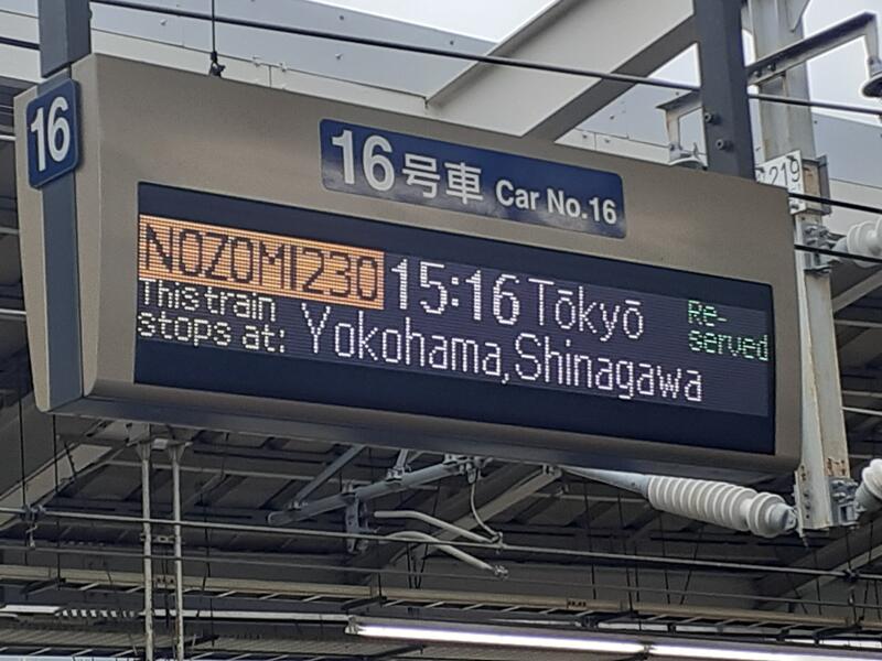 新幹線ホームに移動 乗車 のぞみ230号出発