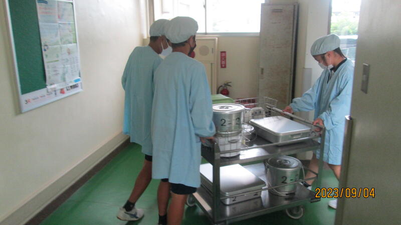 〇昨日は2学期になり最初の給食でした。給食当番が白衣を着て、配膳するのも久しぶりでしたが、「いただきます」の挨拶までスムーズに行っていました。湿気の多いこの時期、調理員さんたちは特に食中毒に気をつけて調理してくれています。食べる方も手洗いなどを入念に行う必要があります。