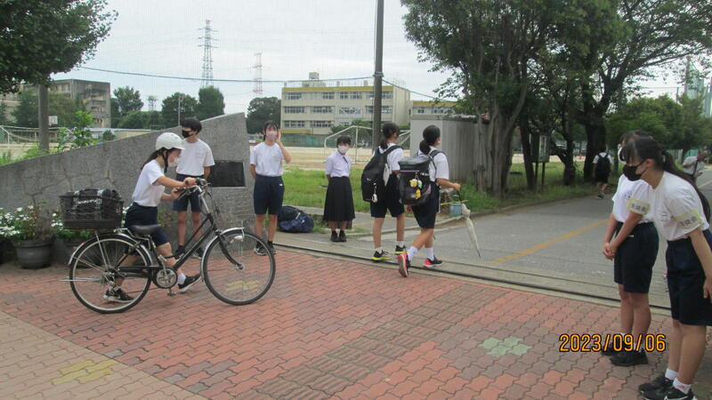〇交通安全運動期間中は、交差点に、交通安全協会の方が立ってくれています。徒歩・自転車共に、気をつけて登下校してもらいたいです。