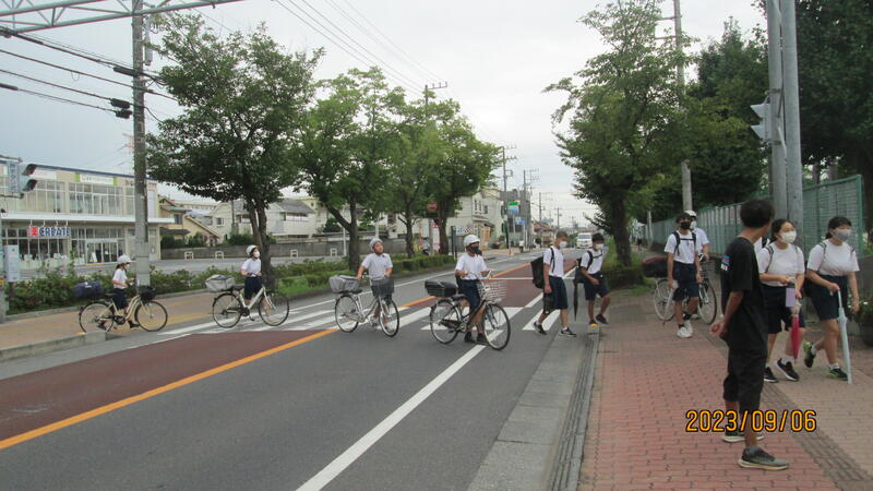 〇特に本校には多くの自転車通学者がいます。一般に自転車事故の最も多い原因が、見通しの悪い交差点や狭い道で信号機がない交差点などで起きる「出合い頭の衝突」です。もし一時停止せずに交差点に進入し、車との衝突した場合、命にかかわる大事故になる可能性があります。朝は時間に余裕をもって登校し、帰りは日暮れの時間がはやまっていますので十分に気をつけて下校してください。